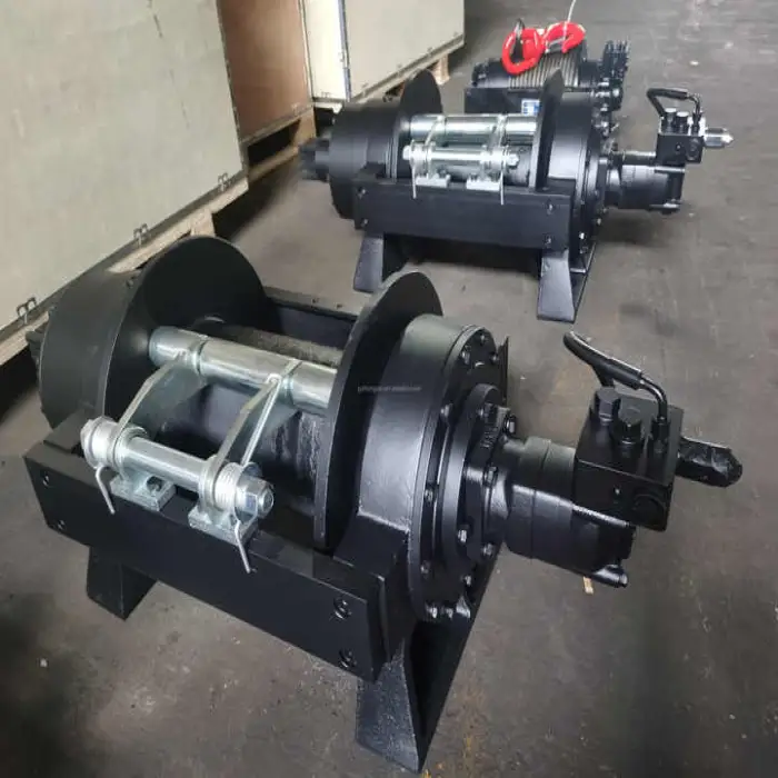 The Directly Hydraulic Winch has a maximum load capacity of 22,000 pounds (10 tons).