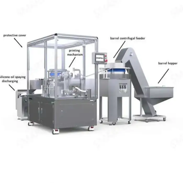 The printing speed of the machine ranges from 240 to 350 syringes per minute.