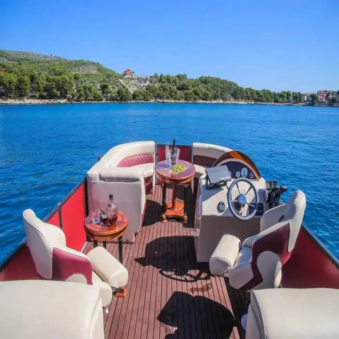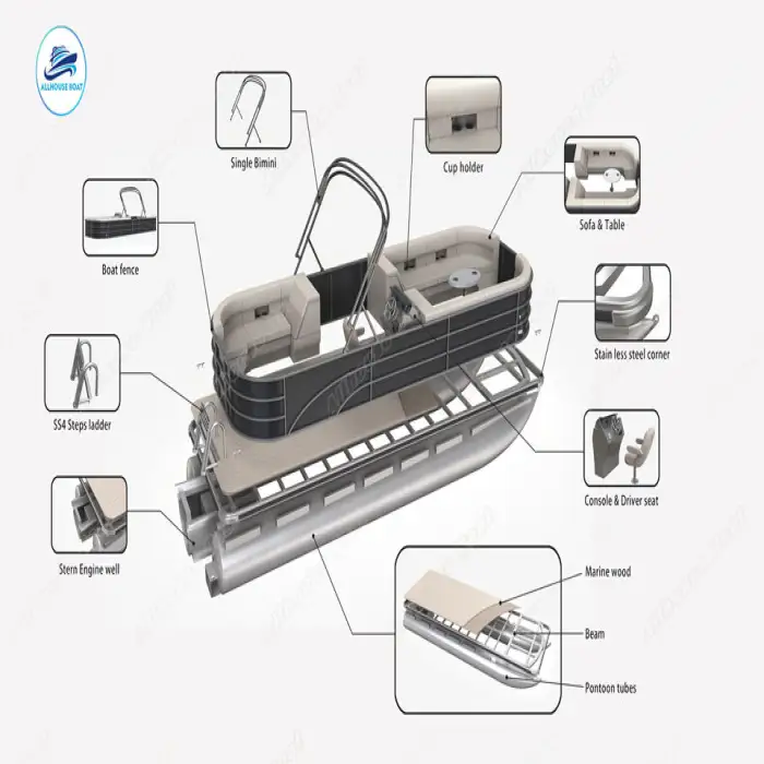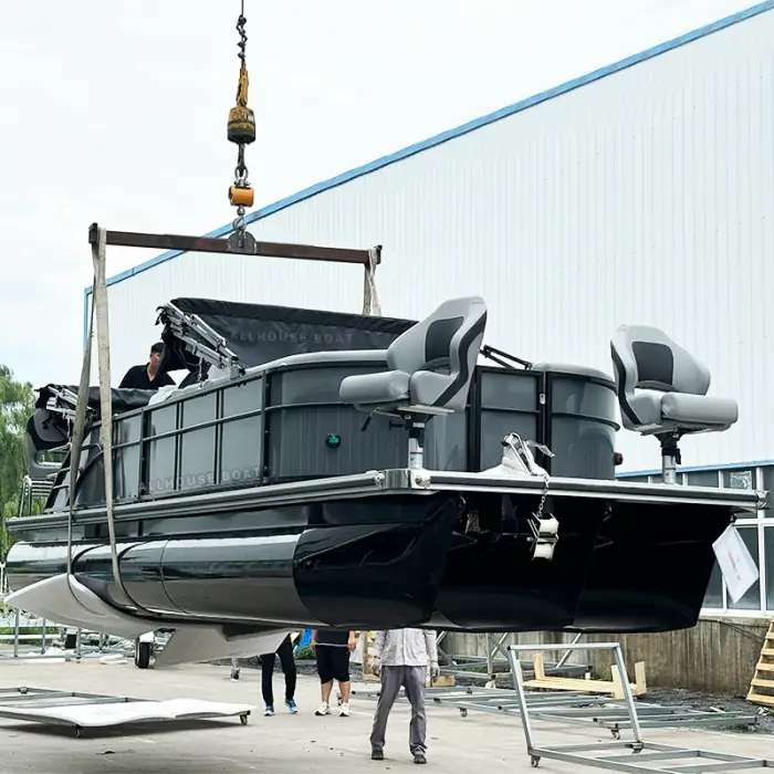 DIY Luxury Aluminium Tritoon Mini Pontoon Boat with Motor Sports Fishing Fiberglass for Ocean Waters Pontoon Boat