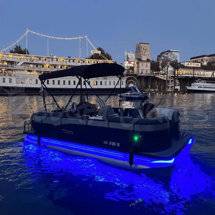 1. What is the overall length of the DIY Luxury Aluminium Tritoon Mini Pontoon Boat?