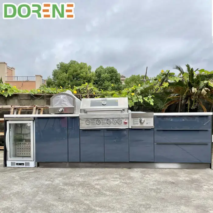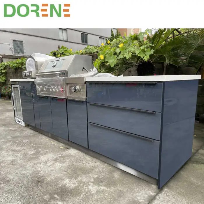 Dorene Modern Modular Dark Grey Furniture Outdoor Kitchen BBQ Island With Sink and Grill