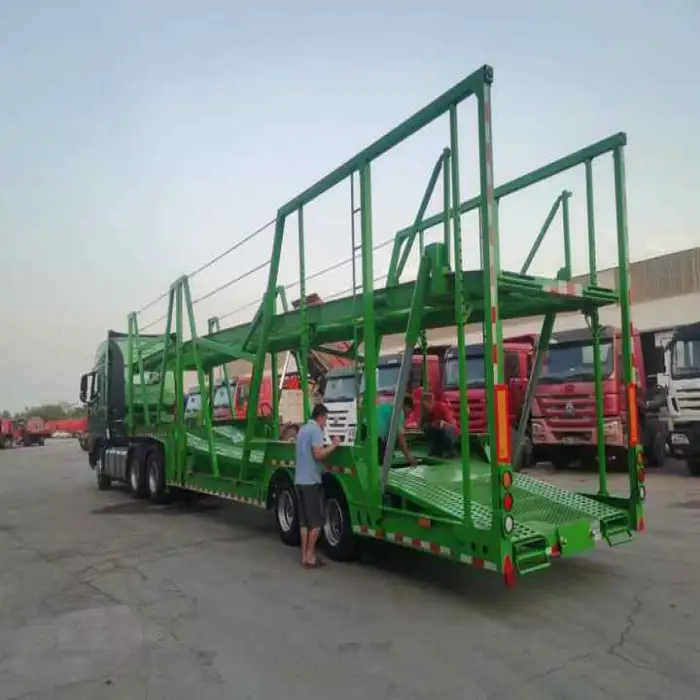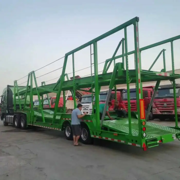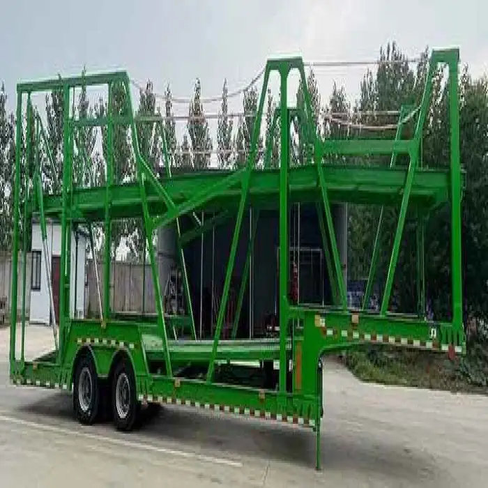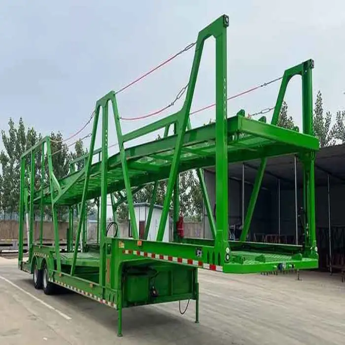 The trailer is designed for transporting cars and vehicles in industrial and commercial sectors. Typical users include auto transport companies, car dealerships, repair shops, and businesses needing to move vehicles over road distances.