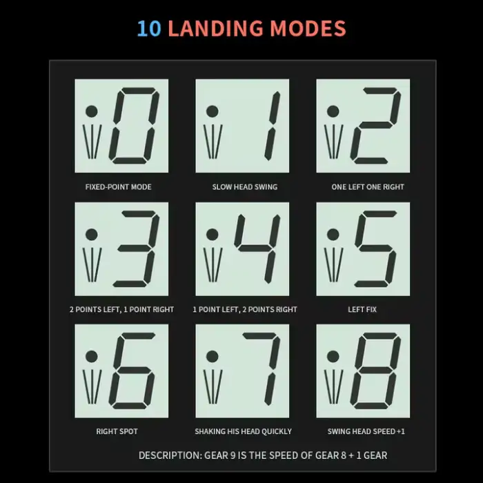 The 9-angle arc adjustment lets you change the elevation/trajectory of delivered balls so you can practice different shot heights and placements (e.g., topspin loops, drives, half-volleys).