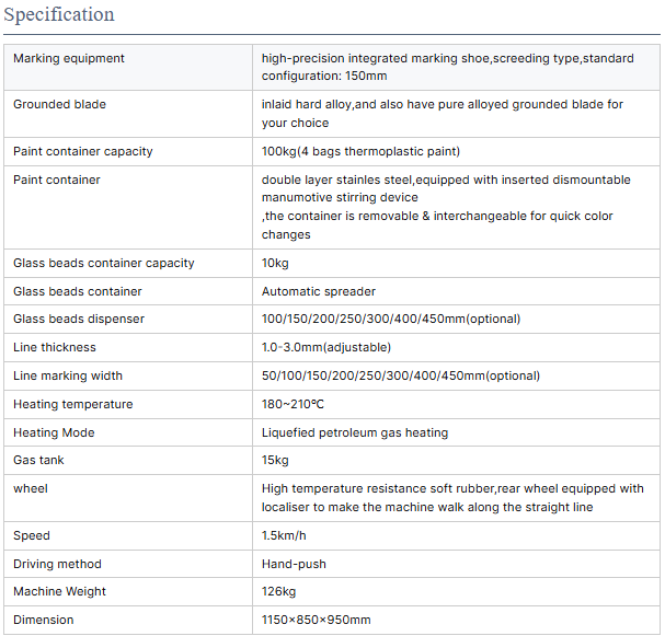 This machine uses hot melt thermoplastic paint, suitable for various road marking applications.