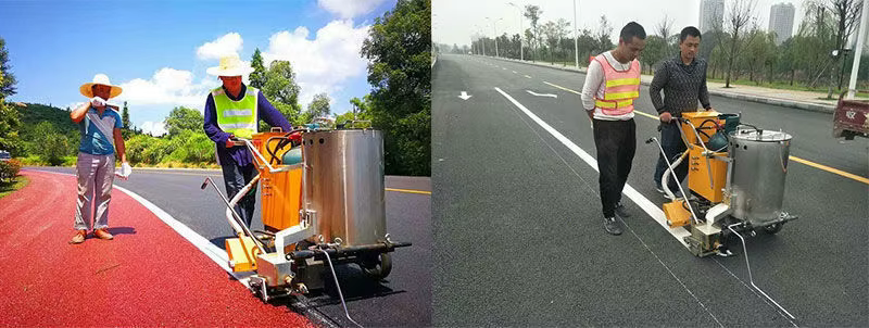 This machine is suitable for marking traffic lines in airports, expressways, guiding arrows, parking lots, warehouses, and stadiums.