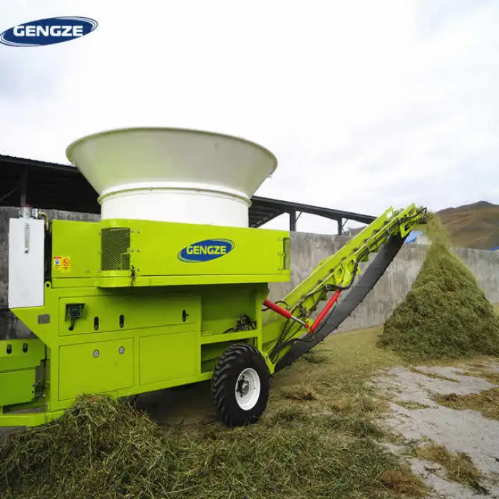 The machine is designed to handle both dry and wet feed materials, making it ideal for cutting hay, straw, and shredding grass and other forage materials.