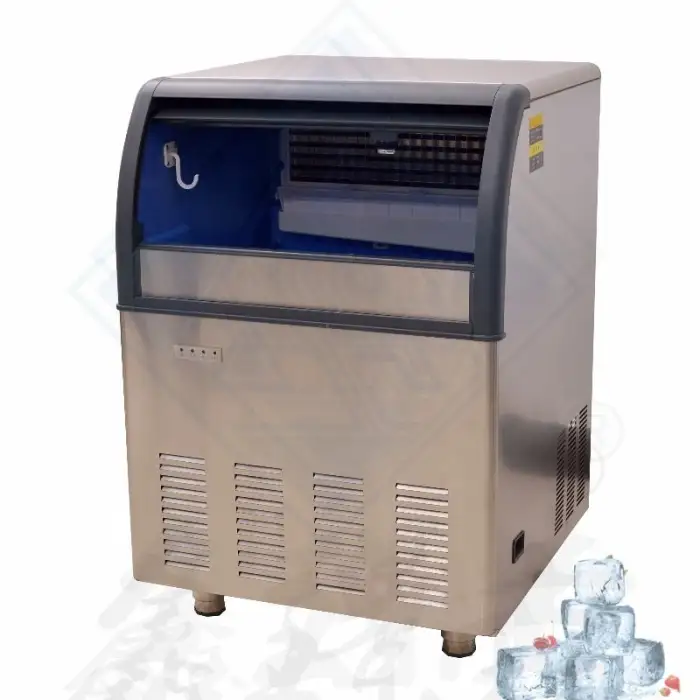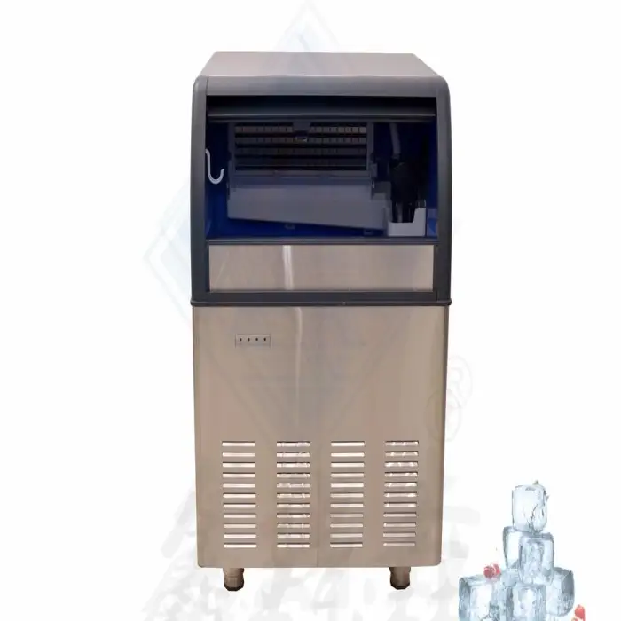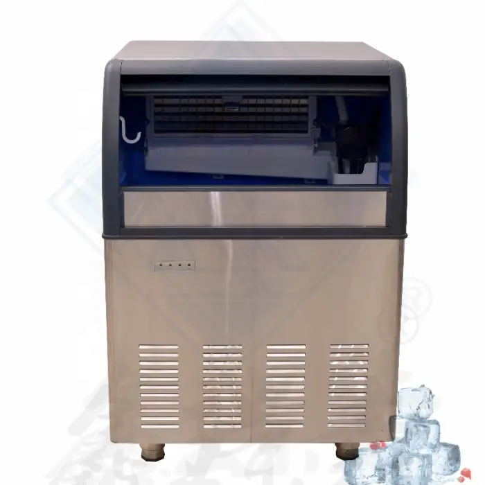 The machine features a water cooling system that efficiently maintains the required temperature for ice production.