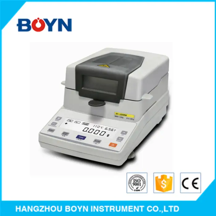 The moisture measurement is highly precise, with a repeatability of 0.50% for 10mg, 0.30% for 5mg, and 0.20% for 1mg samples.