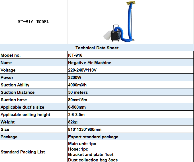 The KT-916 uses high-efficiency filters that capture dust and allergens, improving air quality after duct cleaning.