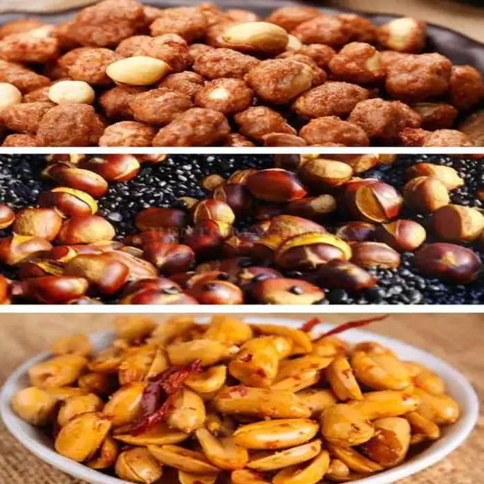 The machine is suitable for various nuts, including cashews, pistachios, and other similar nuts.