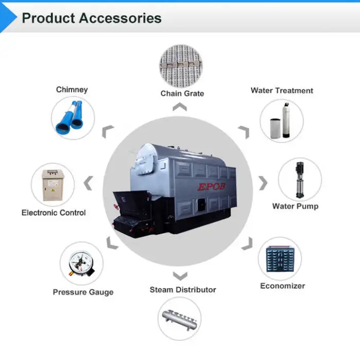 The boiler comes with essential components such as a chain grate and an economizer.