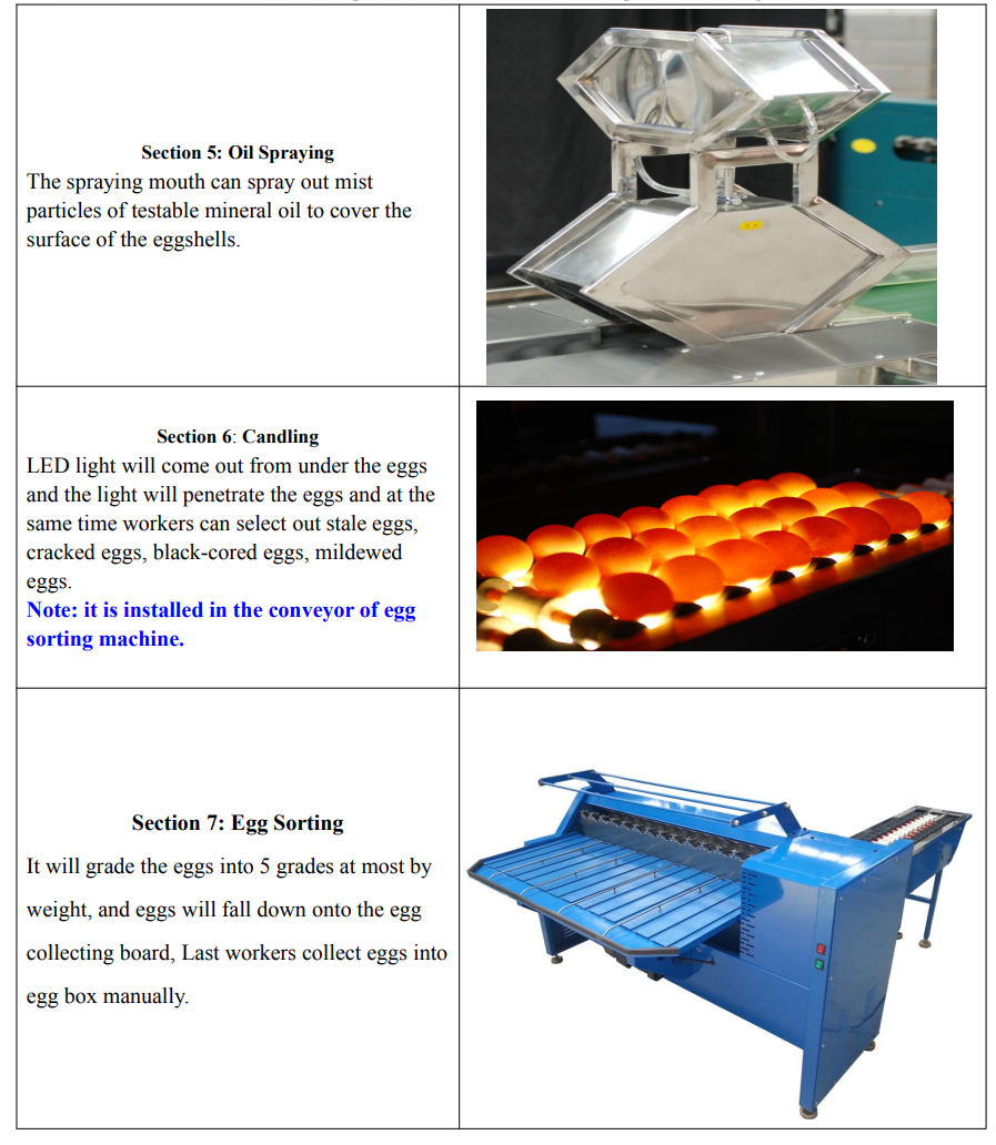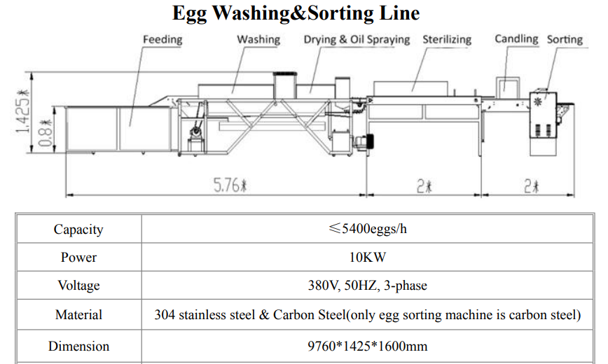 The line includes automated washing, sorting, and drying processes to ensure eggs are clean and sorted efficiently.