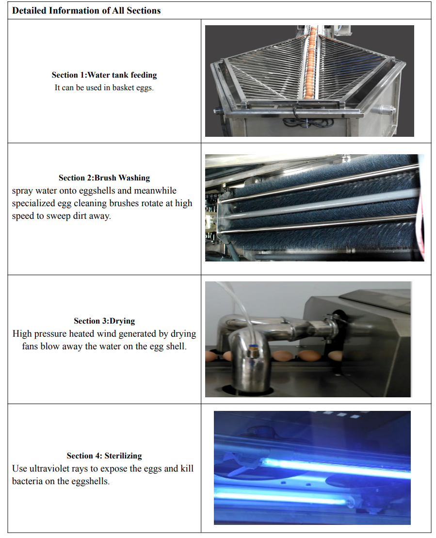 The Egg Washing & Sorting Line has a capacity of 5400 eggs per hour.