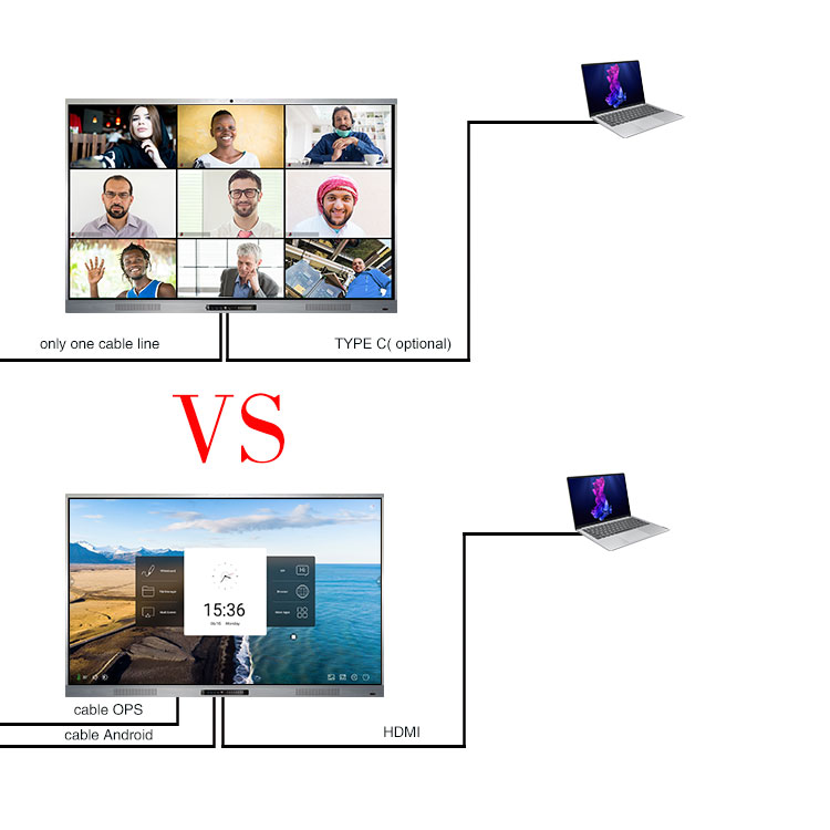 The EIBOARD simplifies connections by requiring only one cable to connect dual systems, with an optional Type-C connection.