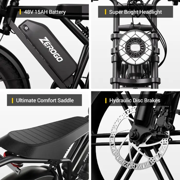 The bike is equipped with a long-lasting 15AH lithium-ion battery.