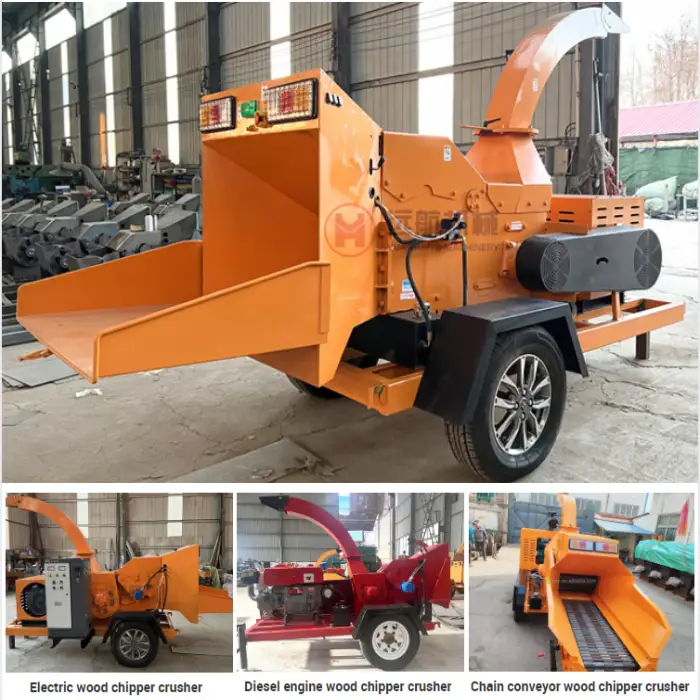 This machine is designed to crush wood logs and turn them into sawdust, making it suitable for processing tree branches and biomass waste.