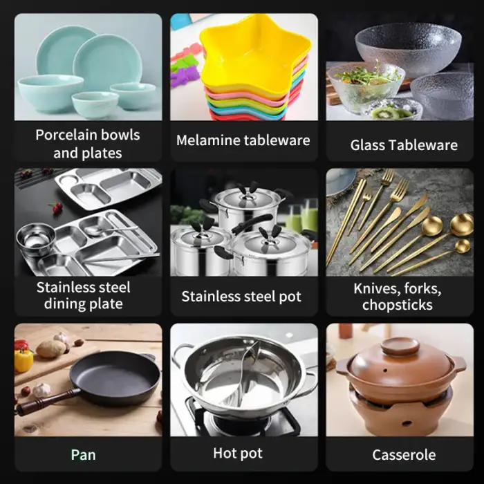 The dishwasher is designed for standard dishware; for large pots and pans, please check the dimensions for compatibility.