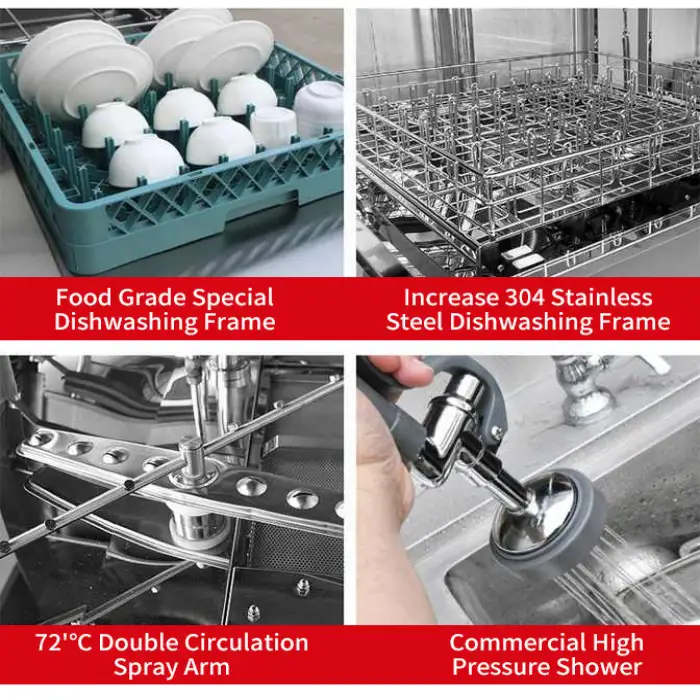 This dishwasher is ideal for hotels, restaurants, cafes, catering services, and commercial kitchens.