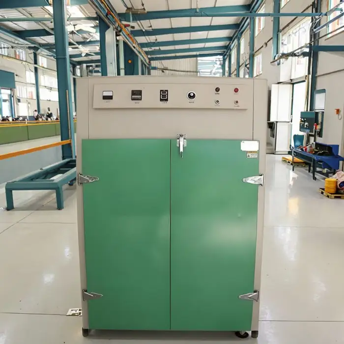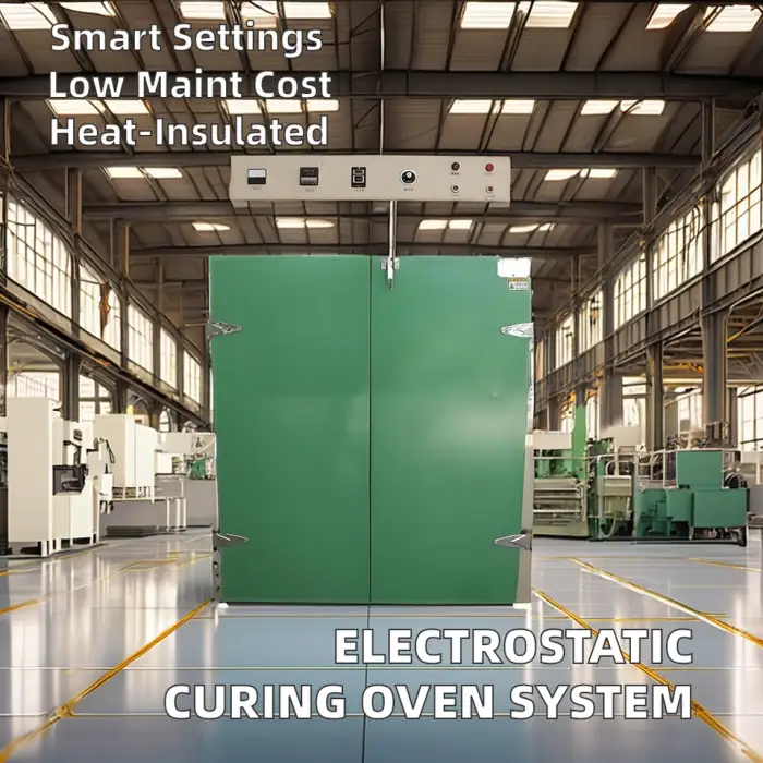 The oven features accurate temperature control, which is crucial for ensuring the proper curing of metal powder coatings.