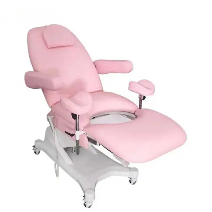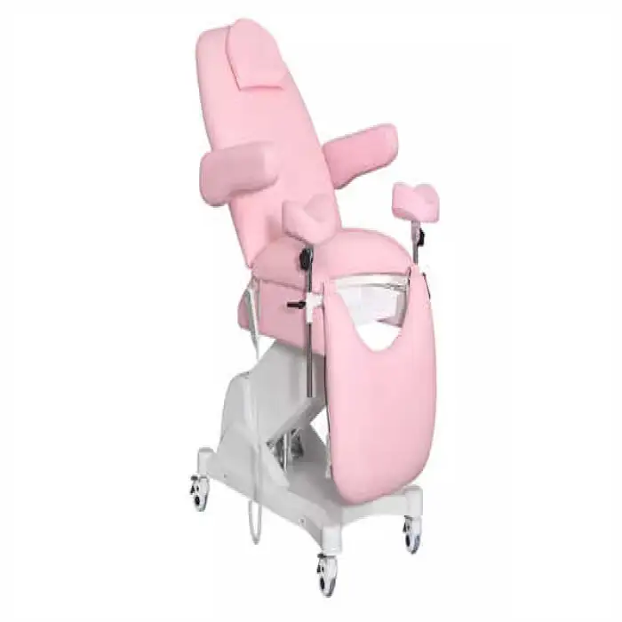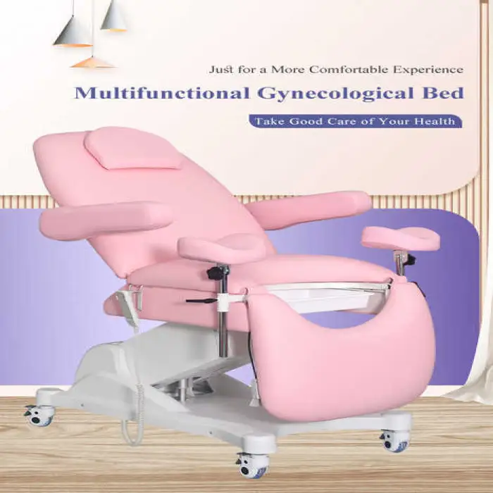 It is an electric gynecological exam bed/chair designed for comfort and ease during gynecological exams, featuring an electric lifting mechanism, comfortable surfaces and durable wheels for mobility in clinics and hospitals.