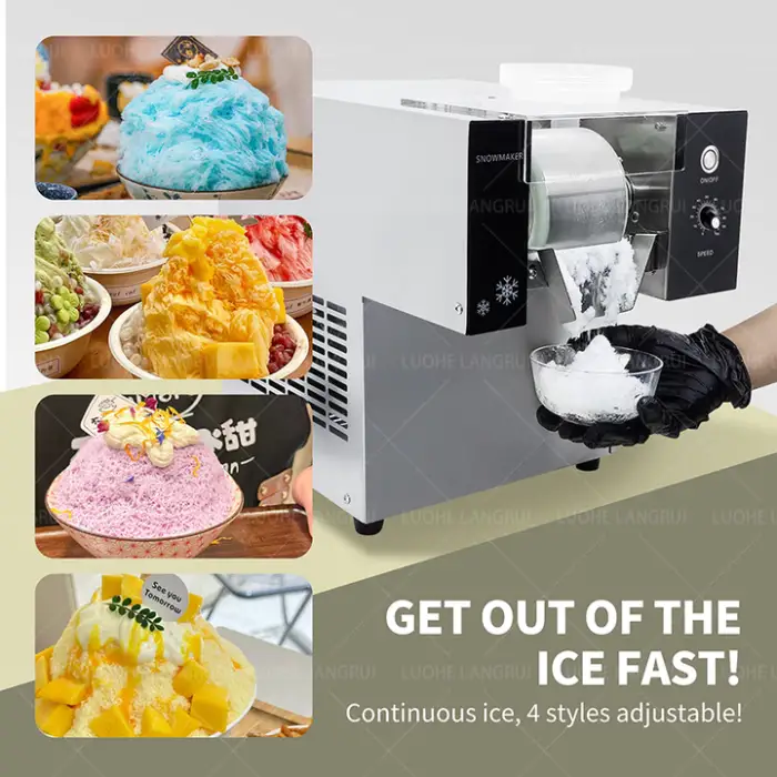 This machine produces soft snow cones and shaved ice desserts.