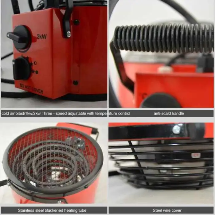 The Electric Industrial Air Fan Heater operates on electricity and is available in two voltage options: 380V and 220V-240V.