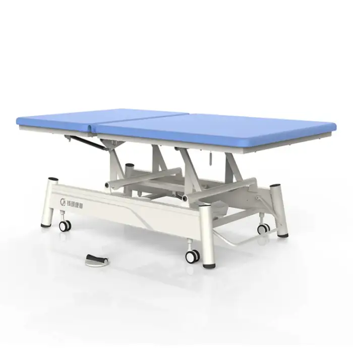 The bed features a 2-section electric adjustment, allowing for flexible positioning of patients to facilitate different rehabilitation exercises.