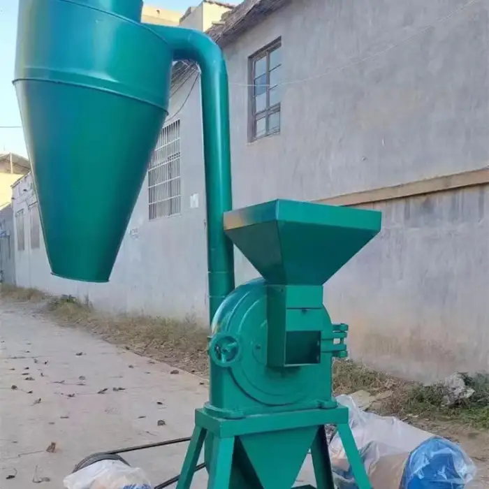 This hammer mill is designed to grind various grains, including maize straw, corn, soybean, and other cereals.