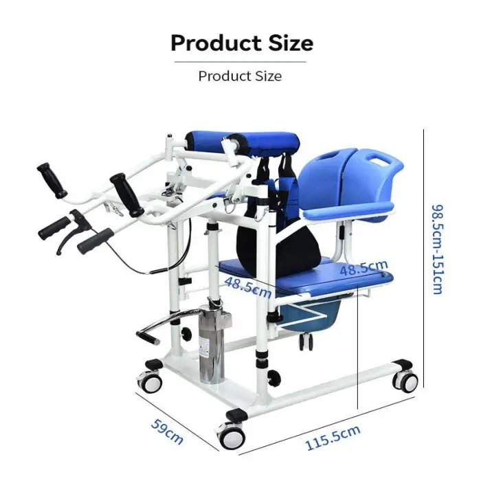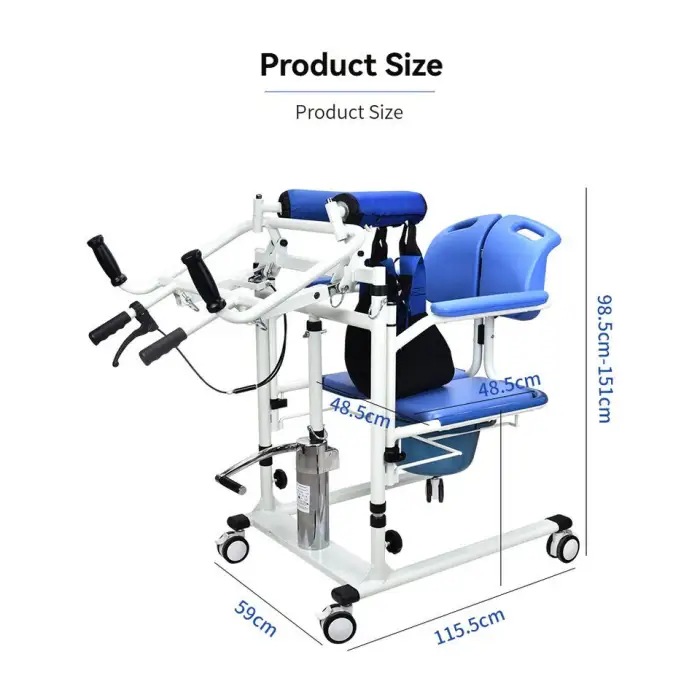 The dimensions of the Electric Patient Lifting Transfer Chair are 79 x 63 x 33 cm.