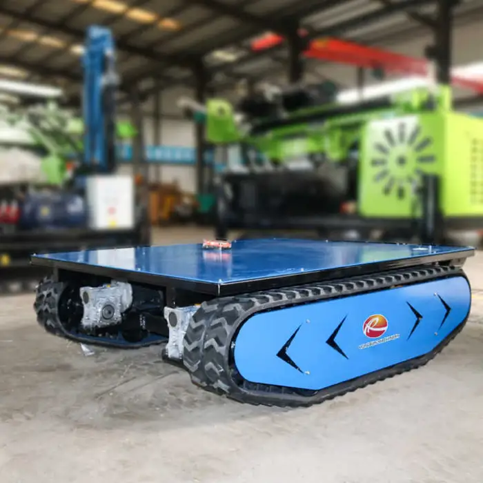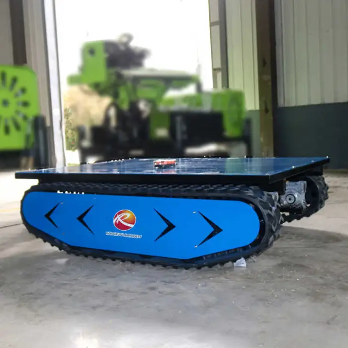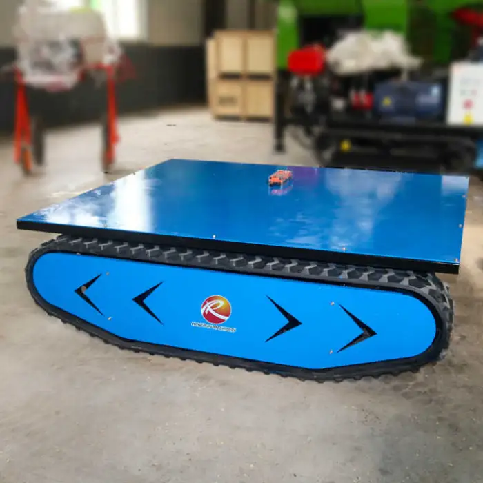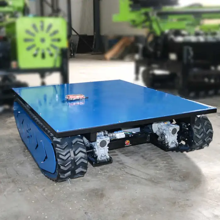 The chassis can be used for construction sites, agricultural tasks, outdoor events, research and development in robotics, and industrial applications for heavy lifting and transport.
