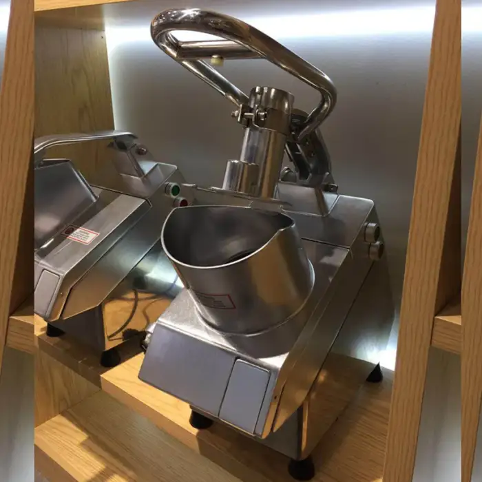 The machine comes with various blades that allow you to adjust the thickness and size of your cuts, providing versatility for different food preparation needs.