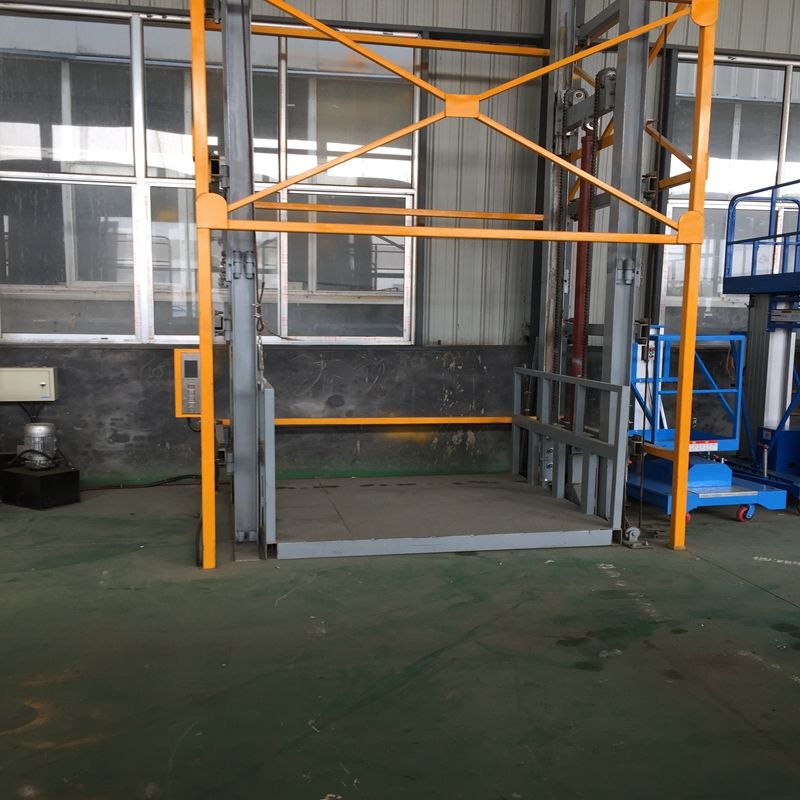 The Elevator Warehouse Guide Rail Cargo Lift Machine is a powerful and reliable solution for lifting heavy goods vertically. This hydraulic cargo lift is designed to handle a maximum load of 10,000 kg. It is perfect for various industries, including construction, manufacturing, and machinery repair. With its robust design and easy operation, this lift helps improve efficiency in your warehouse or work site.