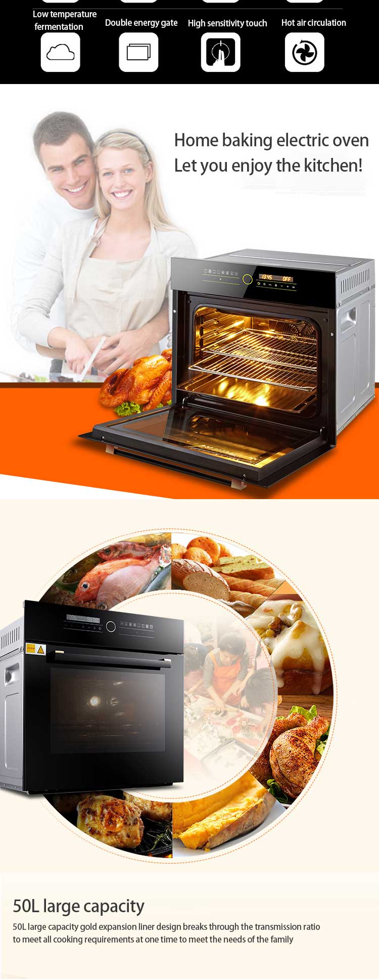 It provides electric steaming and conventional oven functions (baking and roasting). Many recipes can use single modes or combined steaming-plus-baking modes to retain moisture and texture.