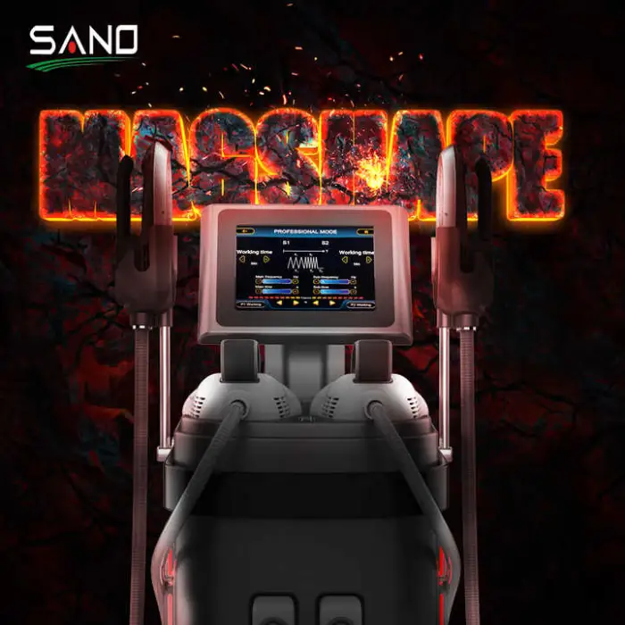 The machine utilizes advanced SCULPT technology and magnetic wave technology for effective muscle stimulation.