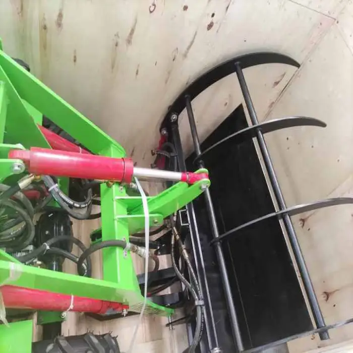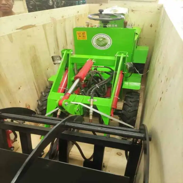 The hydraulic system allows for smooth lifting and lowering of the front shovel, enhancing the loader's efficiency.