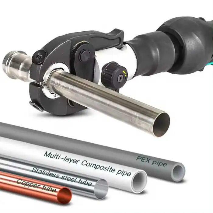 The EP-1332K is designed to crimp copper, PEX, and MLCP pipes.