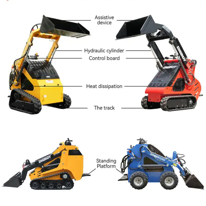 This mini skid steer front loader utilizes a diesel engine from either Kubota or Briggs & Stratton.