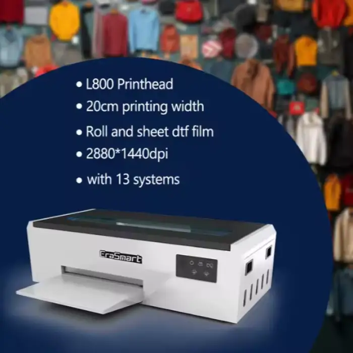 The Erasmart A4 DTF Printer is equipped with a high-quality L805 print head for precise, high-resolution printing.