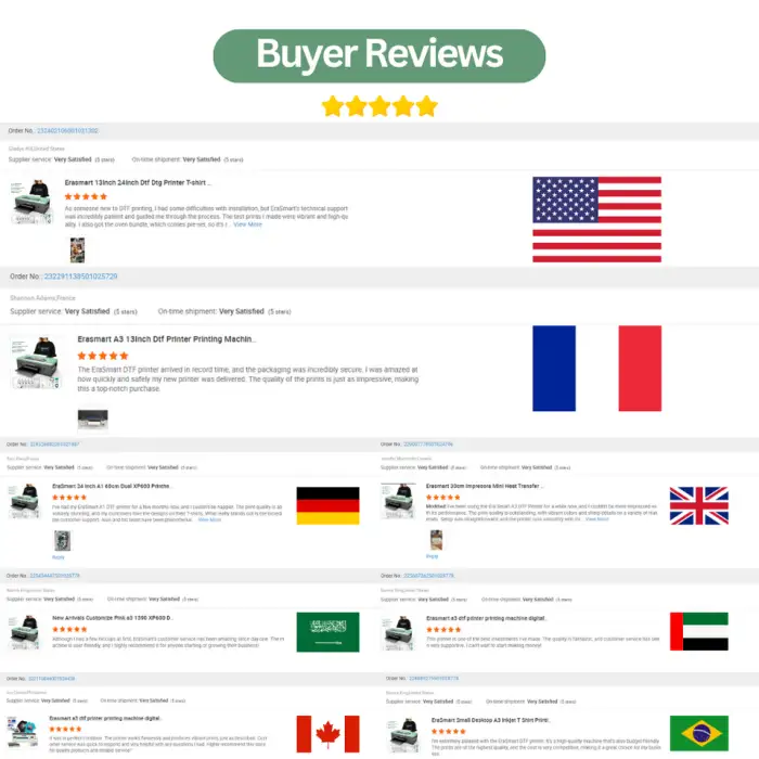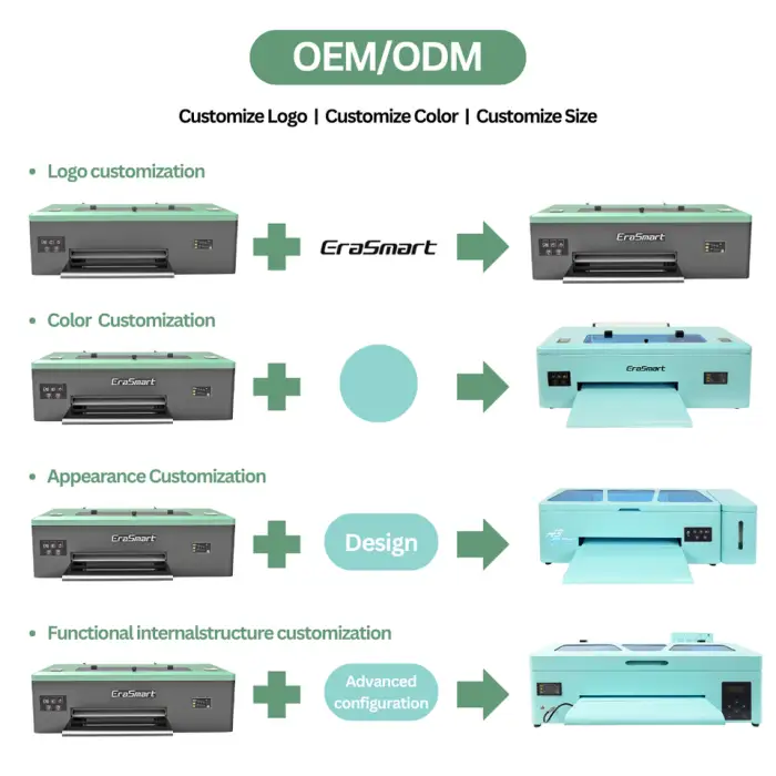 The EraSmart Digital DTF Printer is compatible with several print heads, including 1390, L1800, 1300, and XP600.