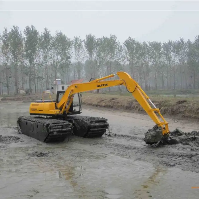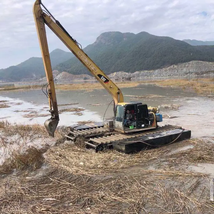 The durable pontoon float design allows the excavator to operate efficiently in water and swampy areas, providing stability and buoyancy.