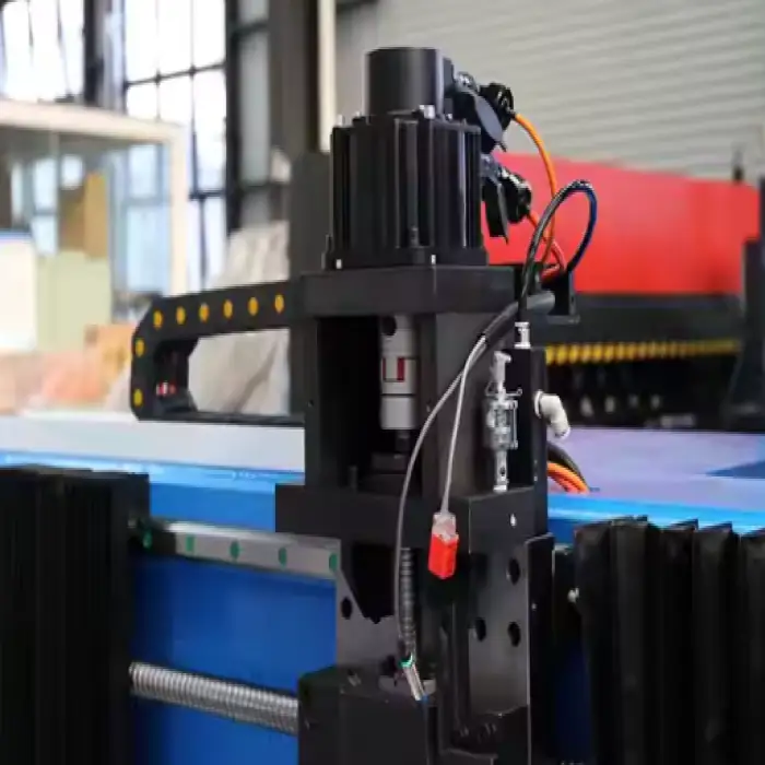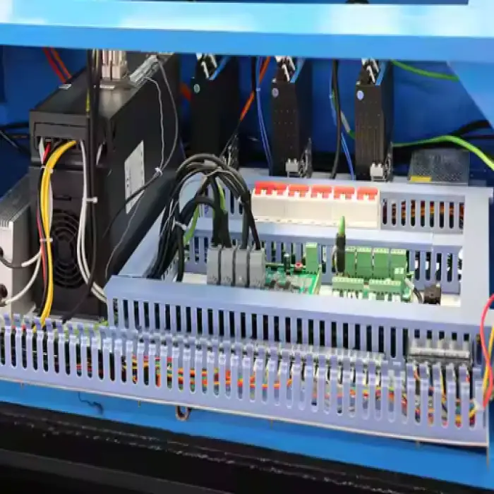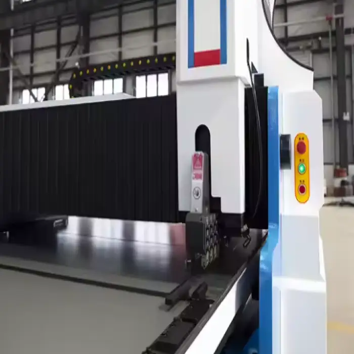 The machine uses advanced CNC control technology for precise cutting and grooving.