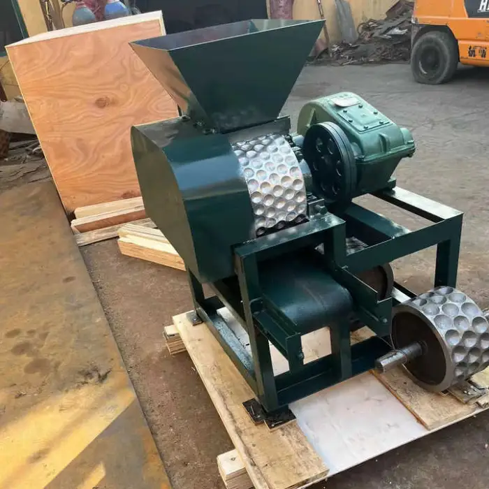 The machine is equipped with a durable AC motor that ensures reliable operation during the charcoal production process.