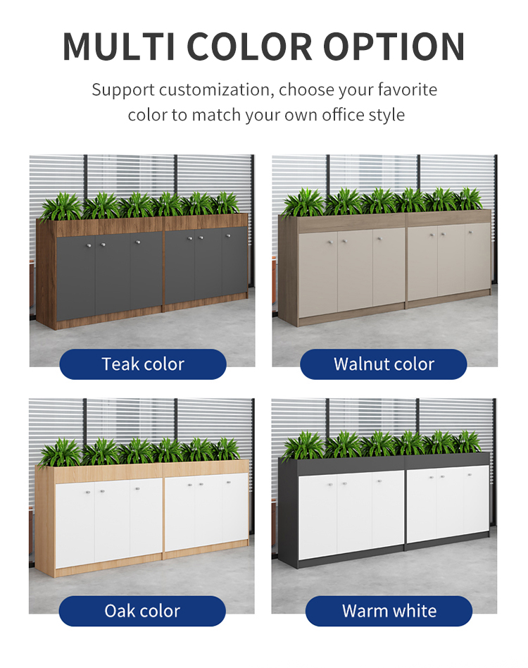 The Executive Office Furniture Planter Cabinet is made from high-quality melamine board, providing durability and a modern look.