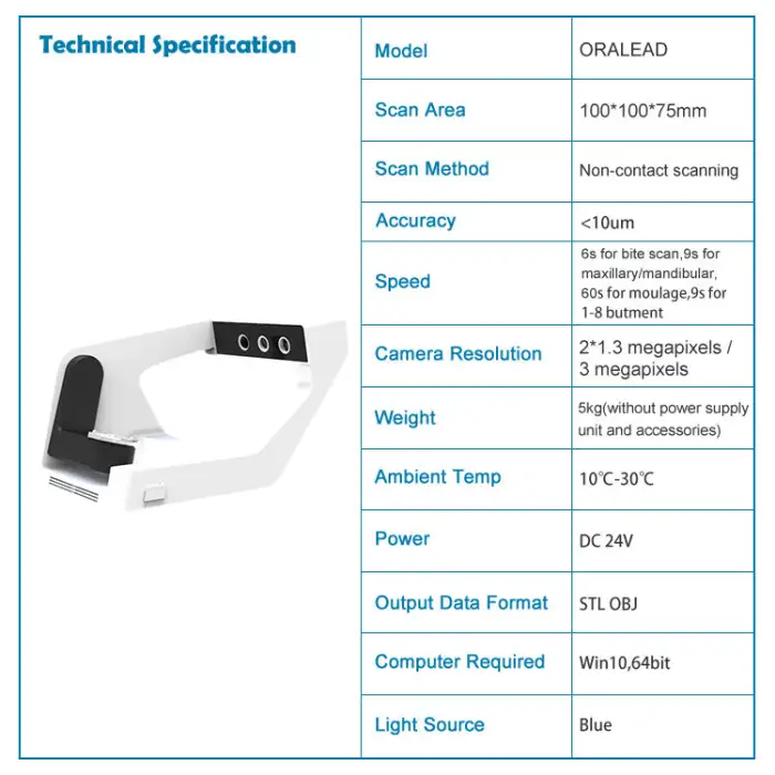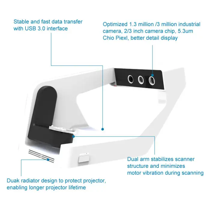 The scanner offers high accuracy with less than 10 microns.