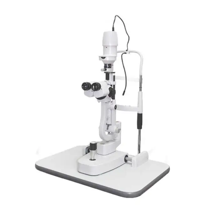 The product description states customizable options are available. Common options for slit lamps include camera adapters, video or photo modules, and different illumination sources—contact the supplier to confirm available accessories and compatibility.