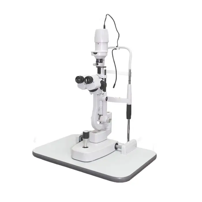 This is the Eye Disease Examination Equipment Continuous Illumination Control 5-step Magnification Slit Lamp (model SL-5A). It is used by ophthalmologists and optometrists to examine the anterior and posterior segments of the eye for diagnosis, routine exams, research and education.
