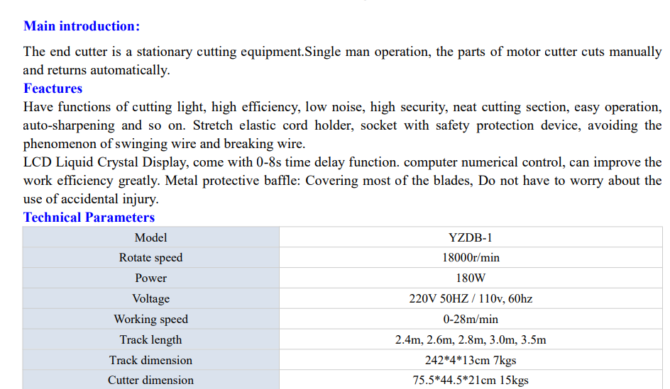 Fabric End Cutting Machine with 3M Guide Rail & 1 Blade