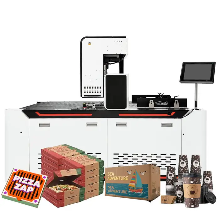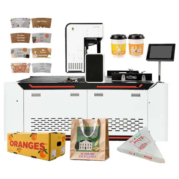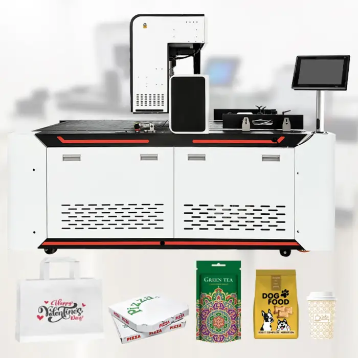 This printer can handle various materials including paperboard, pouches, and cartons.