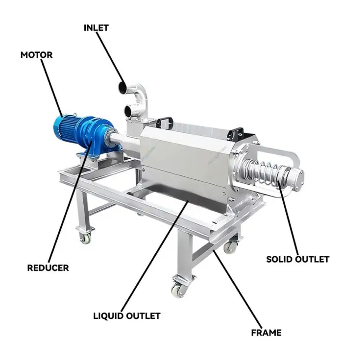 The main function of the Farm Cow Dung Solid Liquid Separator is to efficiently separate solid and liquid waste from animal manure, improving waste management on farms.
