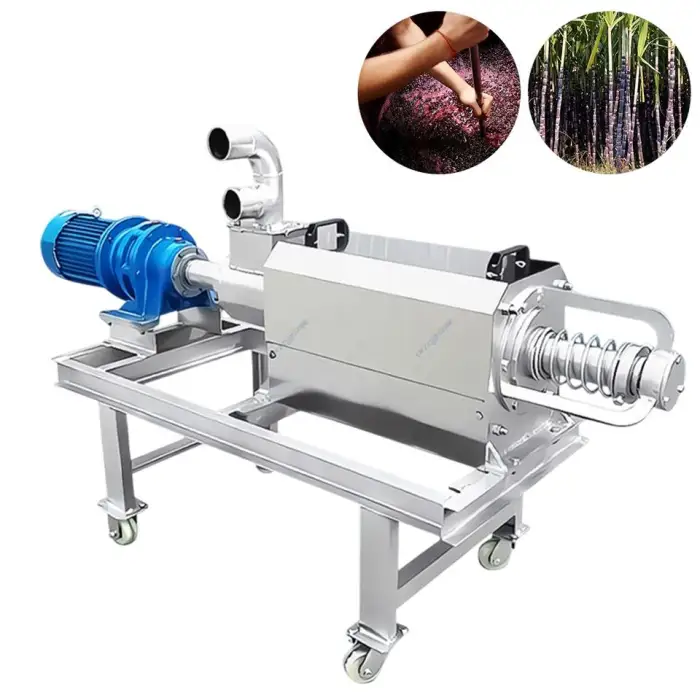 The machine is constructed primarily from durable stainless steel for parts that contact the material, while the sewage pump is made of carbon steel.